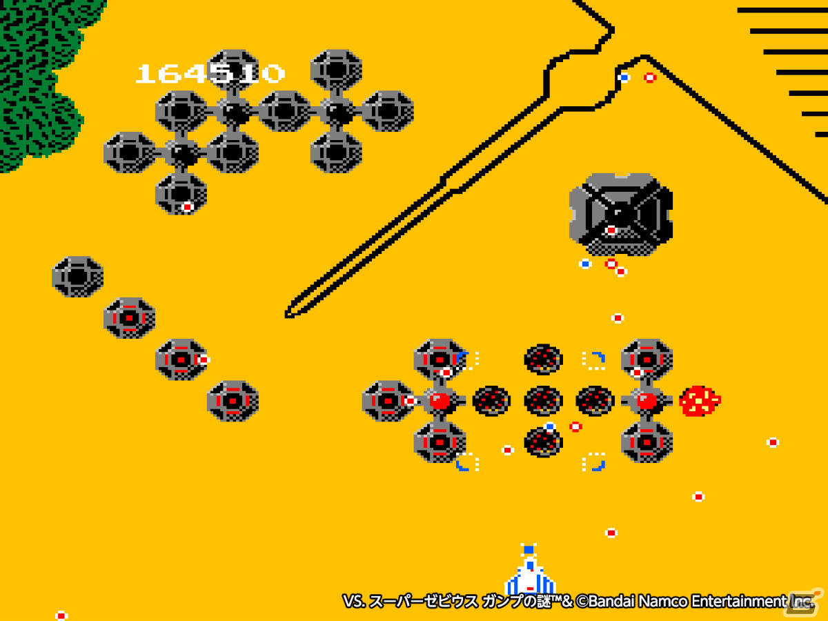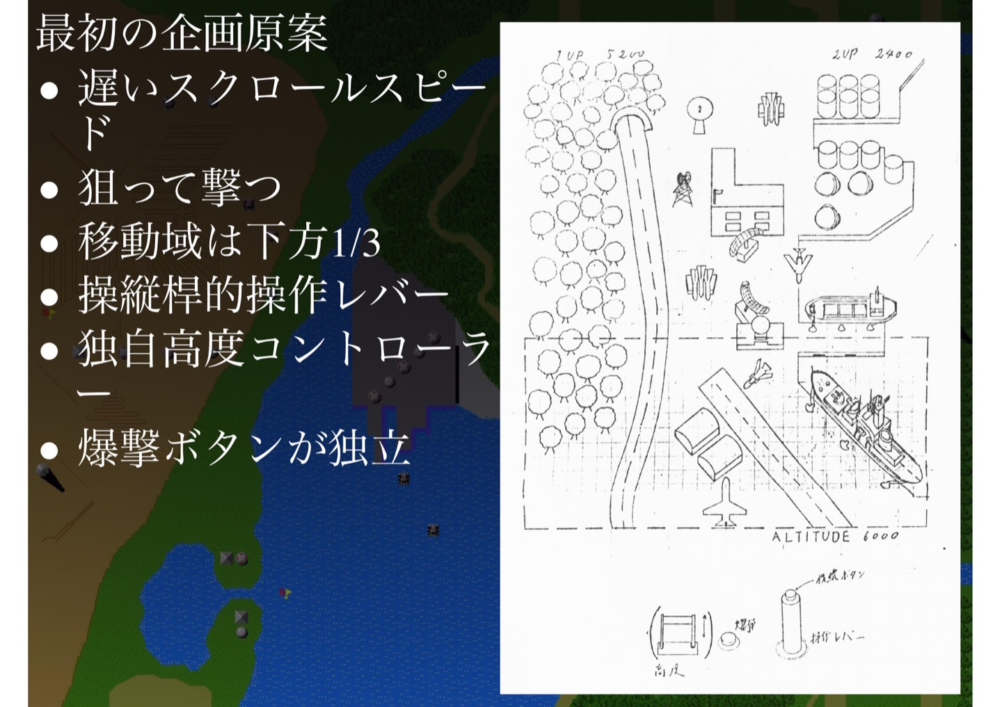 拿到项目的远藤,开始了他近乎“魔法”般的创造。当时市面上的射击游戏,大多是《太空侵略者》那种单屏幕固定靶场,或者刚刚起步的简单卷轴。而《铁板阵》则彻底颠覆了玩家的认知。首先,它实现了真正意义上的流畅纵向卷轴。这在今天看来稀松平常,但在当时,意味着游戏世界不再局限于一个屏幕,而是一片广袤无垠、不断向前延伸的大地。为了实现这个效果,远藤和他的团队搞出了一张巨大的1024×2048像素地图,然后通过类似“光栅中断”的黑科技,在机能极其有限的南梦宫加拉加(Namco Galaga)基板上,硬是实现了背景的无缝滚动切换。这种技术上的突破,直接重构了玩家的空间感知,让人第一次在游戏中体验到了“飞行”的快感。