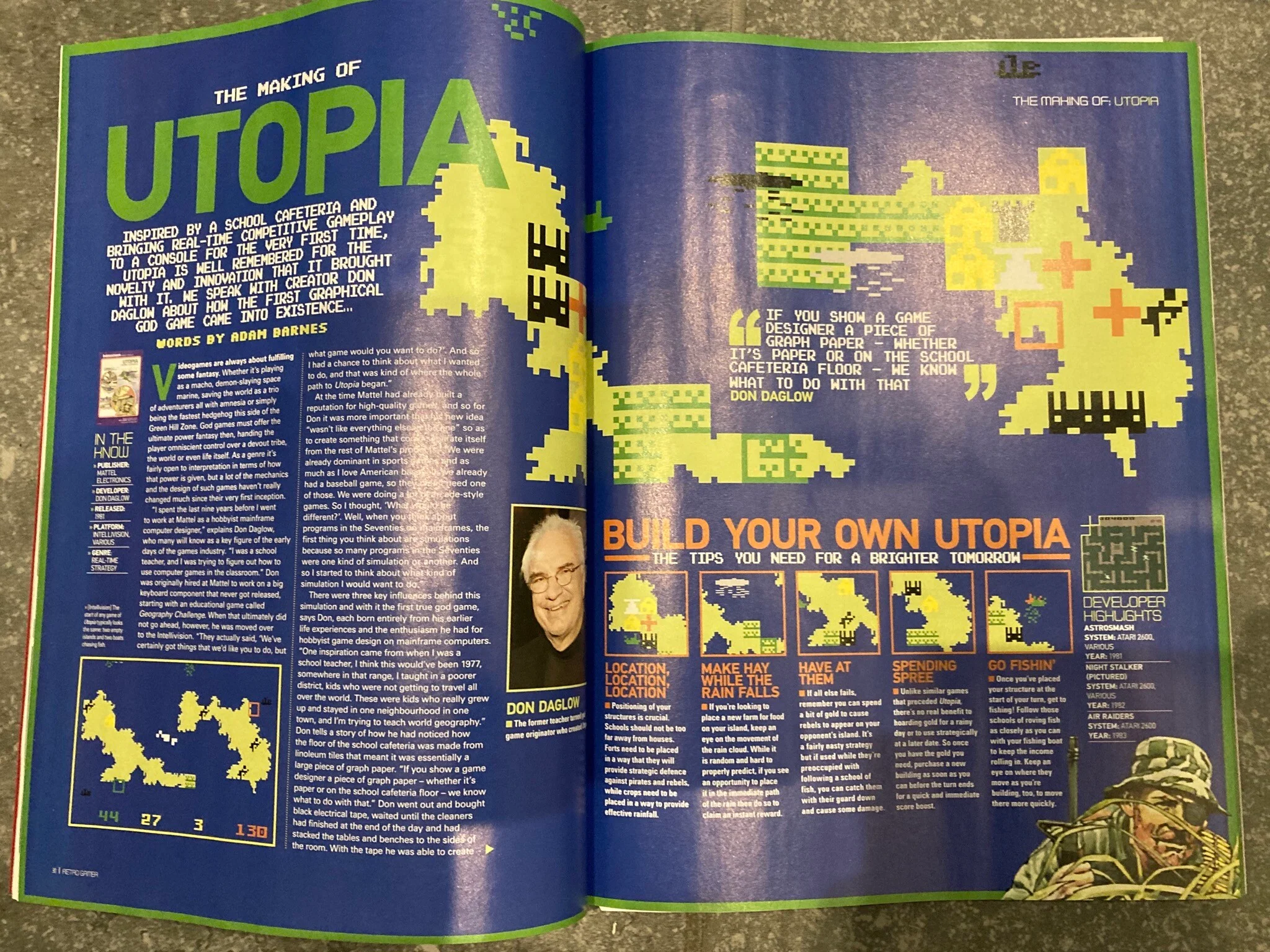 大学毕业后,达格洛并没有顺理成章地去百老汇写剧本。他对游戏的热情,引领他投身于刚刚兴起的商业游戏浪潮。1980年,他加入了玩具巨头美泰公司(Mattel),成为了其旗下Intellivision游戏机开发团队蓝天游骑兵”(Blue Sky Rangers)的元老级程序员之一 。从自由开放的大学机房,到规矩森严的商业公司,这对他是个不小的挑战。但他很快就展现了自己化腐朽为神奇的能力。在Intellivision有限的机能上,他主导开发了两款名垂青史的作品。