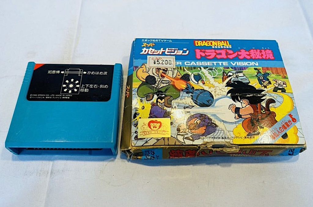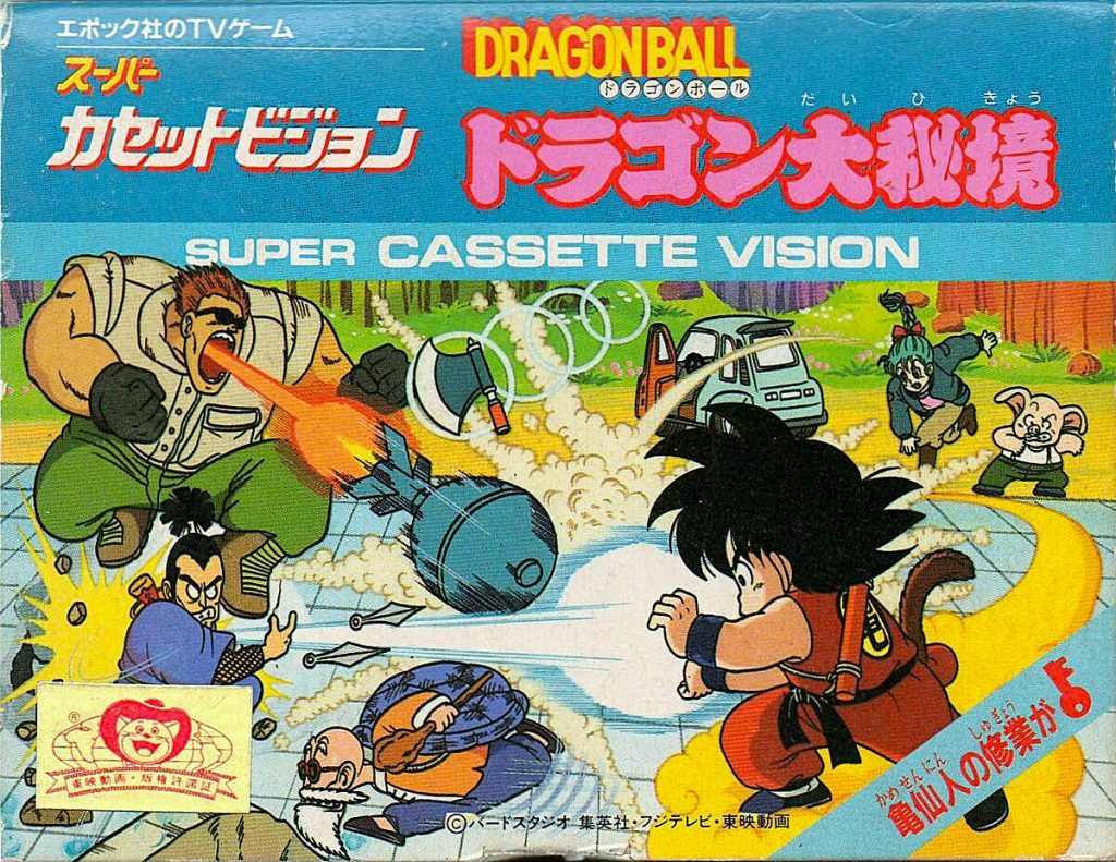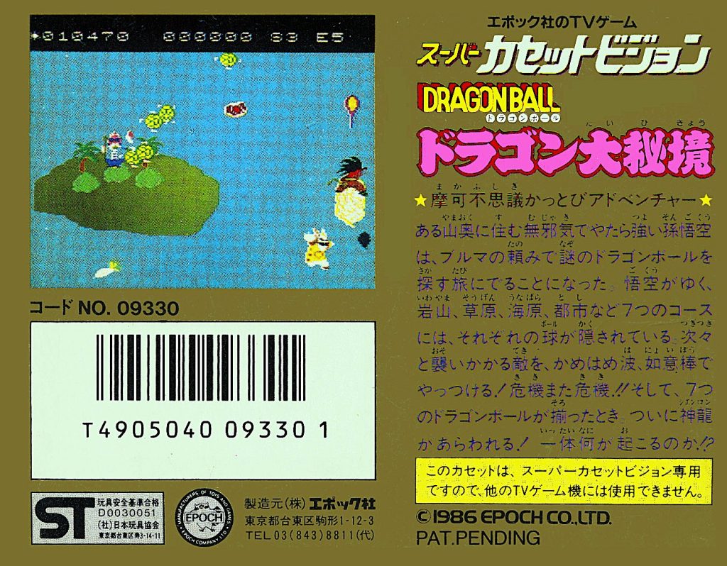 问题是,谁来做?又在哪台主机上做?就在万代(后来的万代南梦宫)还在规划其红白机上的《龙珠》版图时,嗅觉同样敏锐的Epoch社抢先一步。1986年9月27日,史上第一款《龙珠》电子游戏——《龙珠:神龙大秘境》Dragon Ball: Dragon Daihikyou,在Super Cassette Vision平台正式发售。Epoch社很可能就是这款游戏的发行方,或是与开发方有着紧密的合作关系,因为在当时的硬件环境下,第三方为SCV这种非主流平台开发游戏需要主机厂商极大的技术支持。可以想象,Epoch社是把宝押在了《龙珠》这个超级IP身上,希望借助悟空的人气,为自己的主机事业续命。