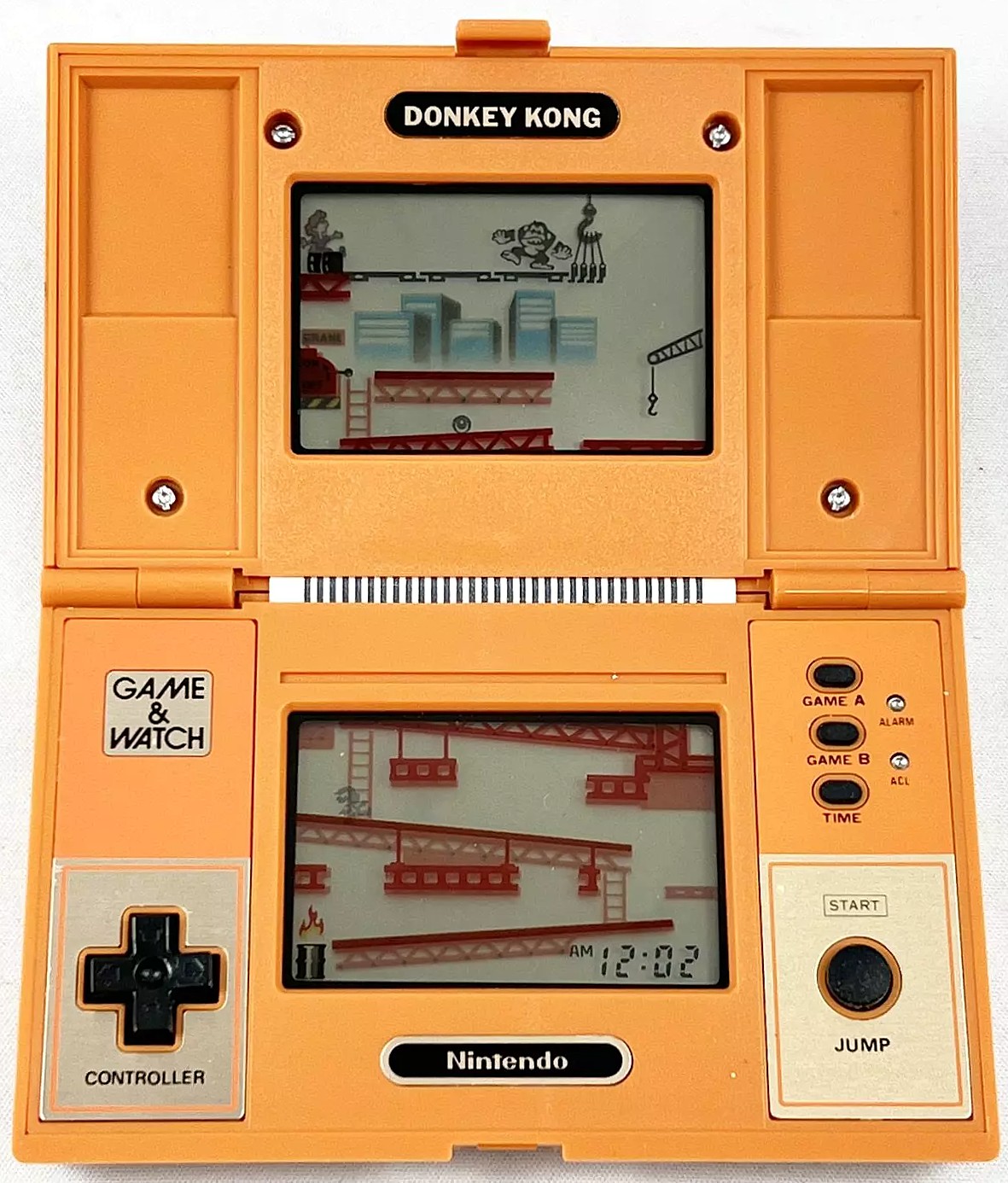 于是,在1982年,当《大金刚》在街机市场如日中天,而Game & Watch正愁如何延续辉煌时,一个显而易见却又无比艰难的决策摆在了任天堂面前:把那个在巨大屏幕上活蹦乱跳的大猩猩,塞进这个巴掌大的、连屏幕都不能自由显示图像的“电子计算器”里。这两条伟大的河流,终于在此刻,汇于一处。